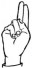 На ћирилици написано БУДИМИР ВЕЛИЧКОВИЋ састоји се из 17 слова [?]. Исписано ћириличном једноручном азбуком за глувонеме: